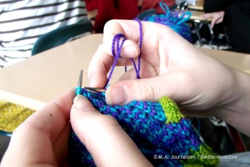 In a break before class, activities like knitting take place. Photo by Maddie Binning.