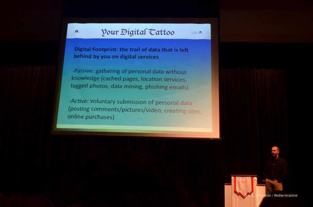 Technology integration specialist Sam Meyers warns students about their internet presence and “digital tattoo.” Photo by Maddie Binning.