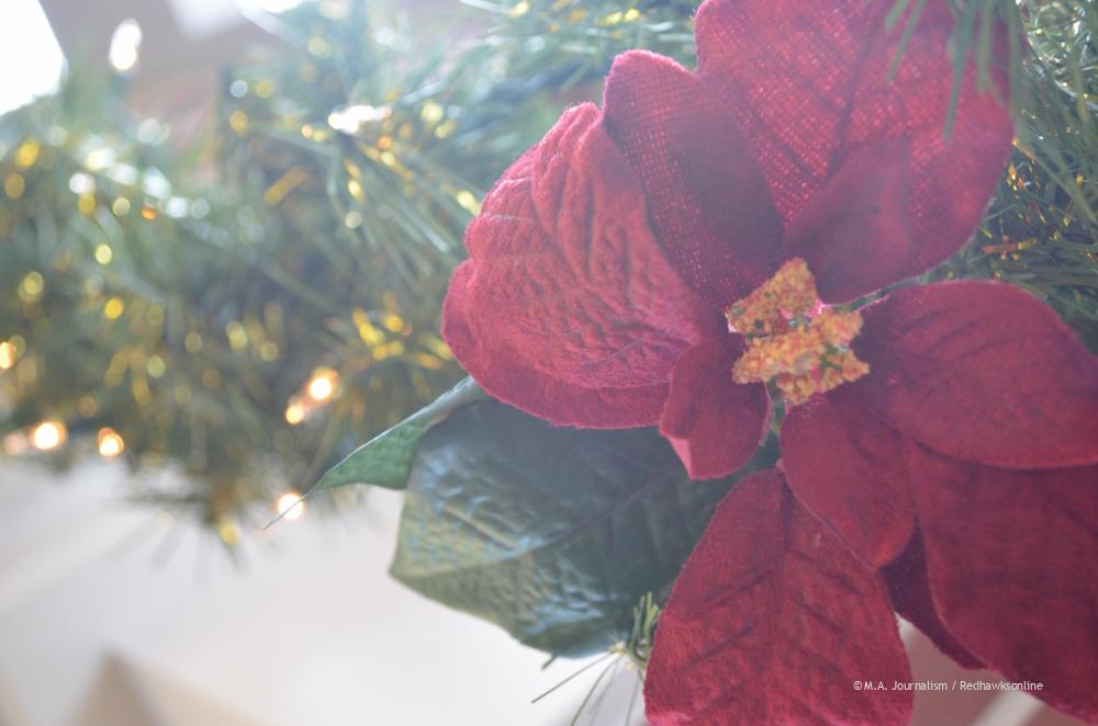 The mantel above the fireplace is decorated for the holidays. Photo by Maddie Binning.