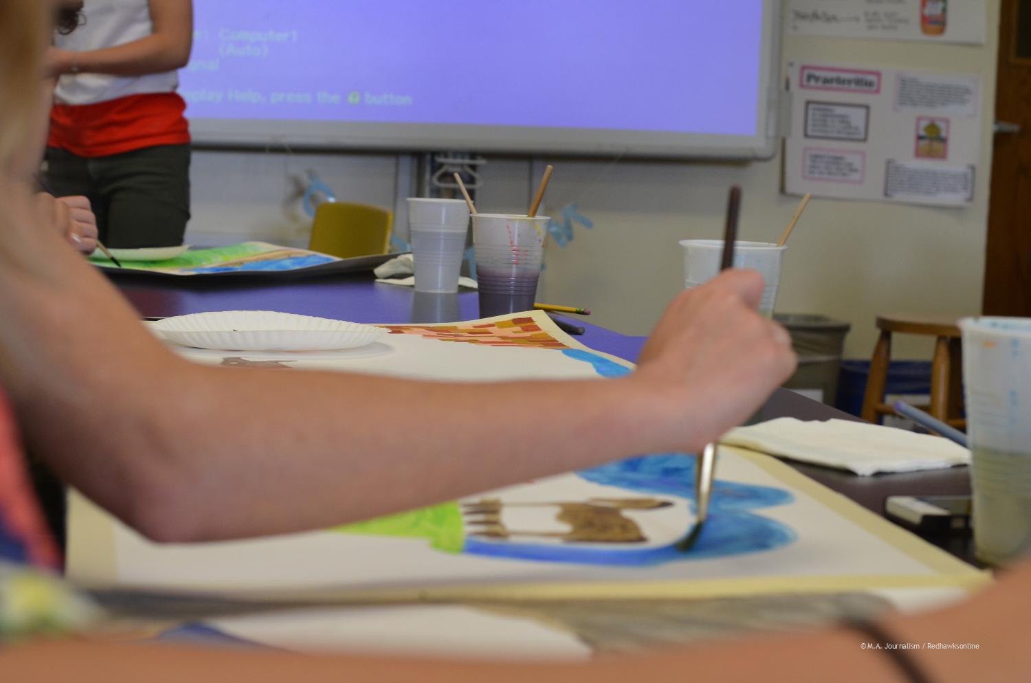 Latin classes paint scenes from the poetry they studied throughout the year. Photo by Maddie Binning.