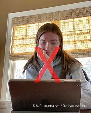 - If your laptop or iPad is tilted up, arrange the camera so you can be seen from the side: