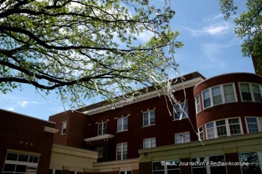 The seniors TP the front lawn as a part of their senior prank. Photo by Maddie Binning.