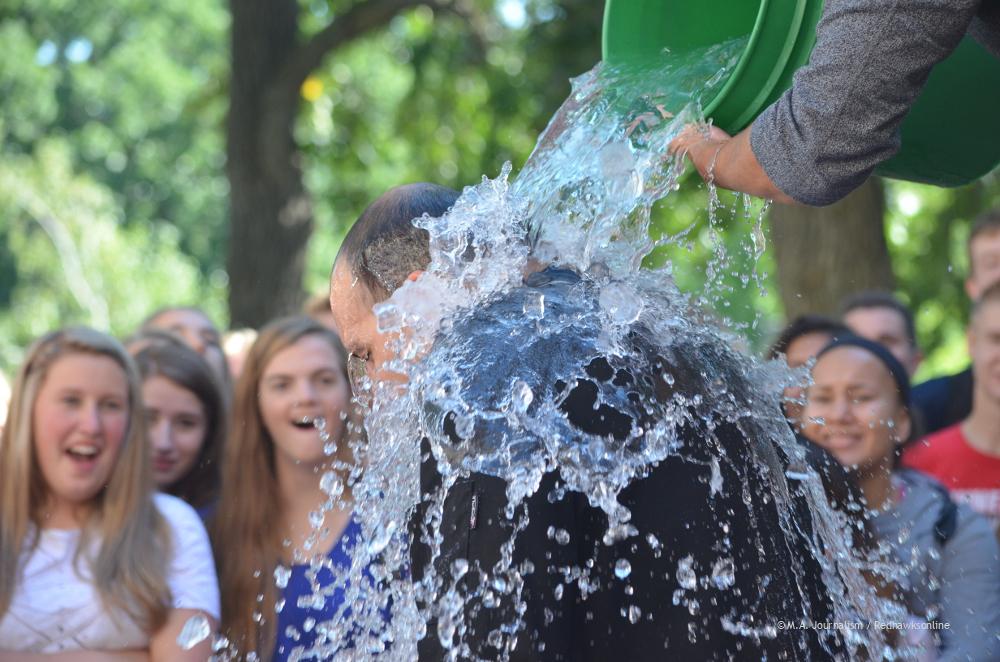 School chef Jonathan does the ALS Ice Bucket Challenge during advisory. Photo by Maddie Binning.
