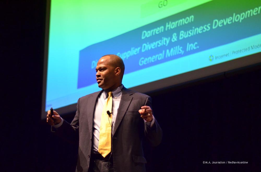 Speaker Darren Harmon speaks about branding as a preview for career day. Photo by Maddie Binning.