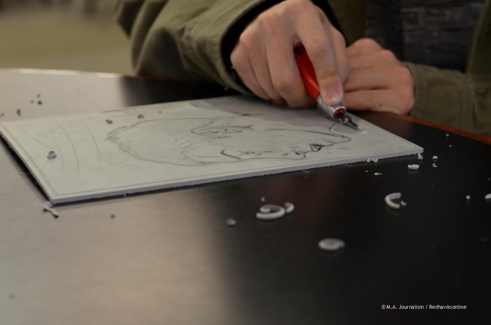 A student works on an art project in the campus room during a free hour. Photo by Maddie Binning.