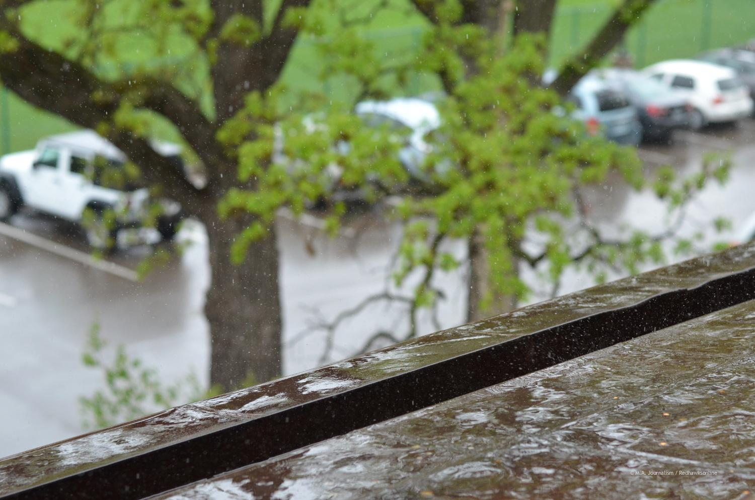 Spring rain falls on a green Wednesday afternoon. Photo by Maddie Binning.