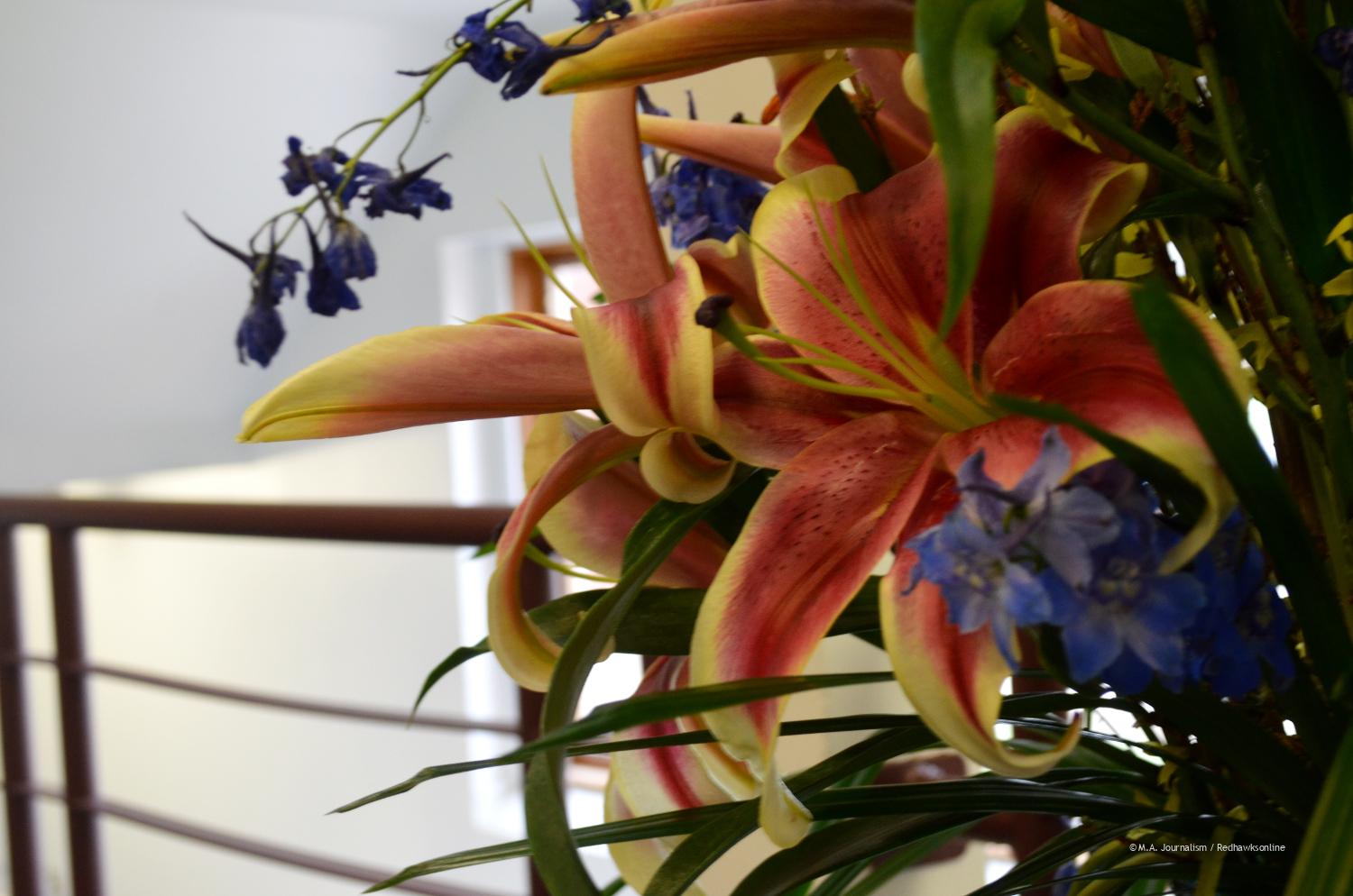 Flowers brighten up popular hallways in the school. Photo by Maddie Binning.