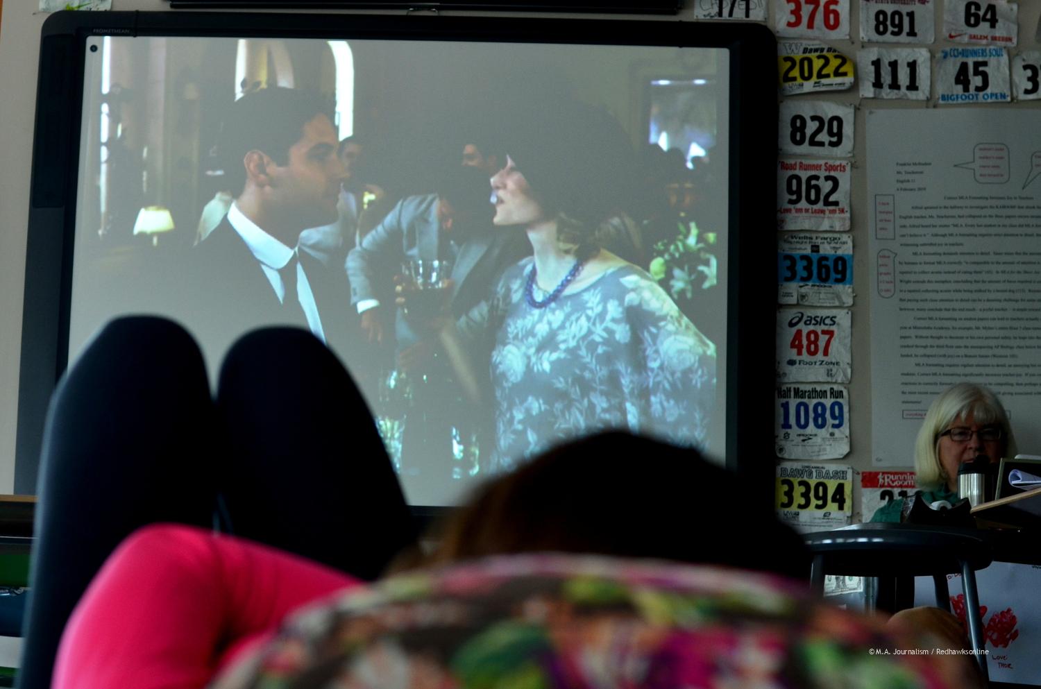 English students watch The Great Gatsby during class. Photo by Maddie Binning.