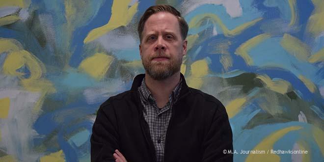 “One of the things we had to do was, in the span of three weeks, figure out a new unit, because we realized clay wasn’t going to be a possibility,” he said. “When you do clay, you have to have a properly ventilated space. And you need a larger sink, and different plumbing. It’s totally dependant on a proper studio setup, and I knew right away that was not going to happen. So I’ve kinda been writing a course while I was teaching it this fall, which has been the paper arts course-printmaking and collage. And y’know, whenever you’re doing something for the first time there are things that work, and things that you would do differently if you did it again, so I’ve learned a little from teaching it. It’s been fun but it’s been challenging.”