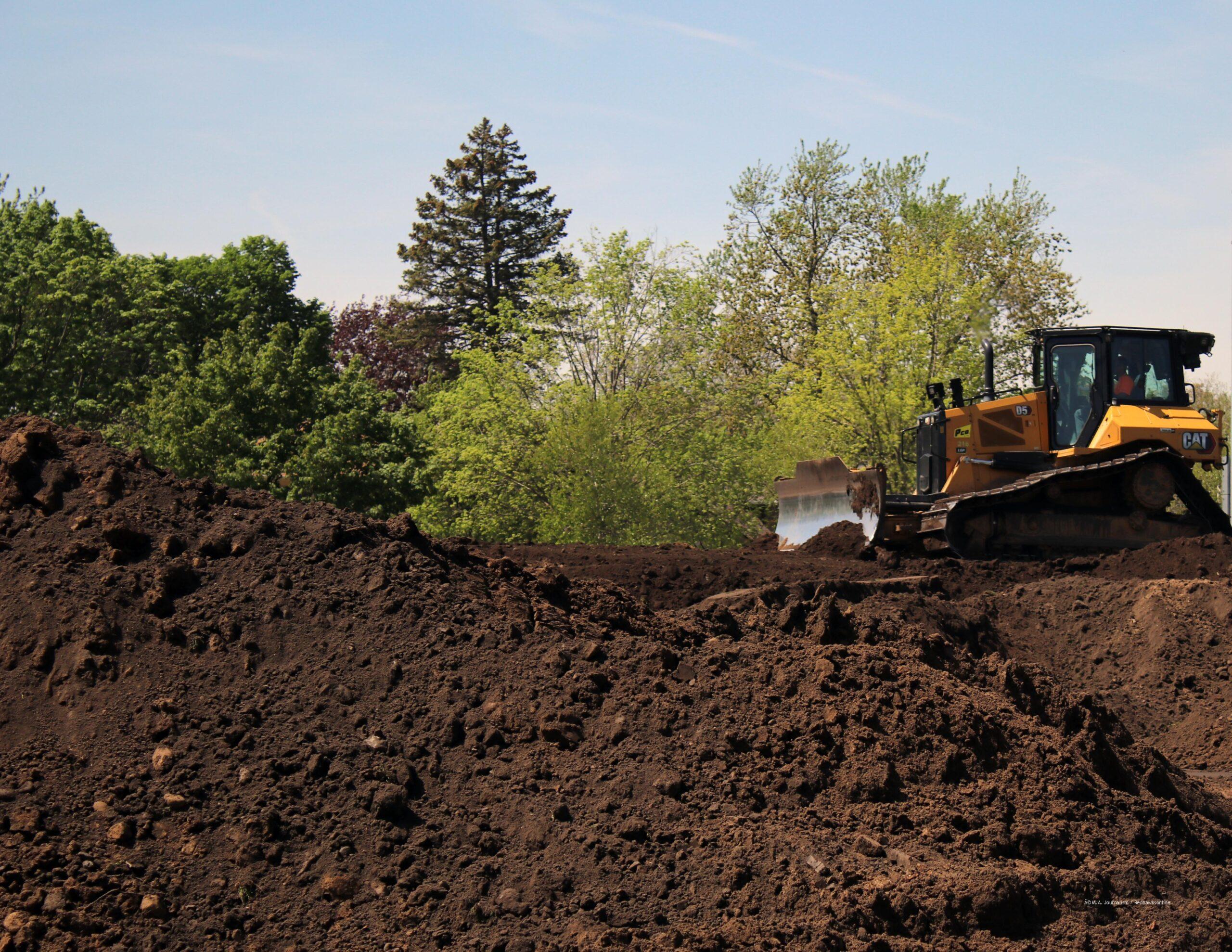 First, beginning May 5, the old grass field was dug up and the bleachers removed. Next, the area will be dug down almost two feet, then filled up with rocks and sand to help with drainage.