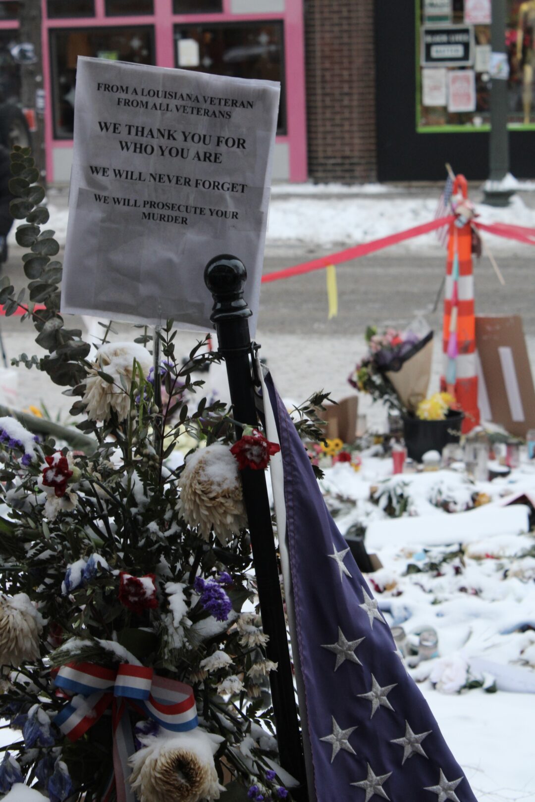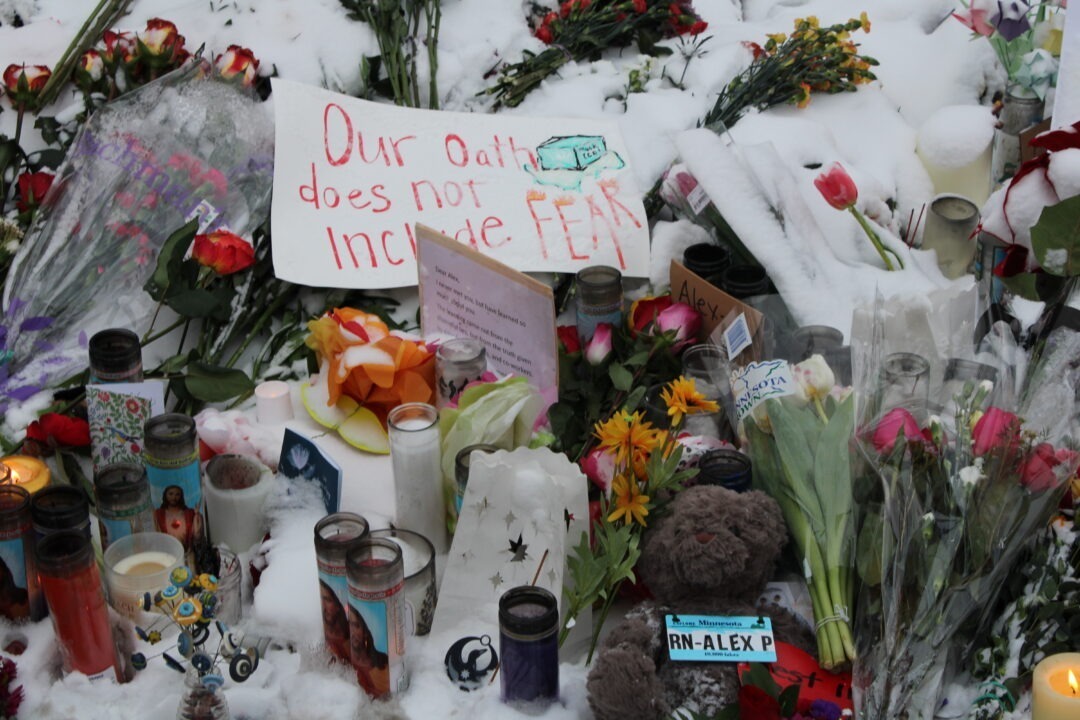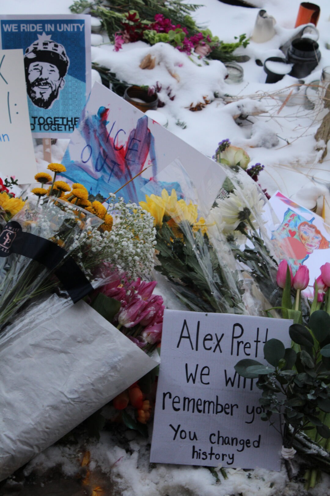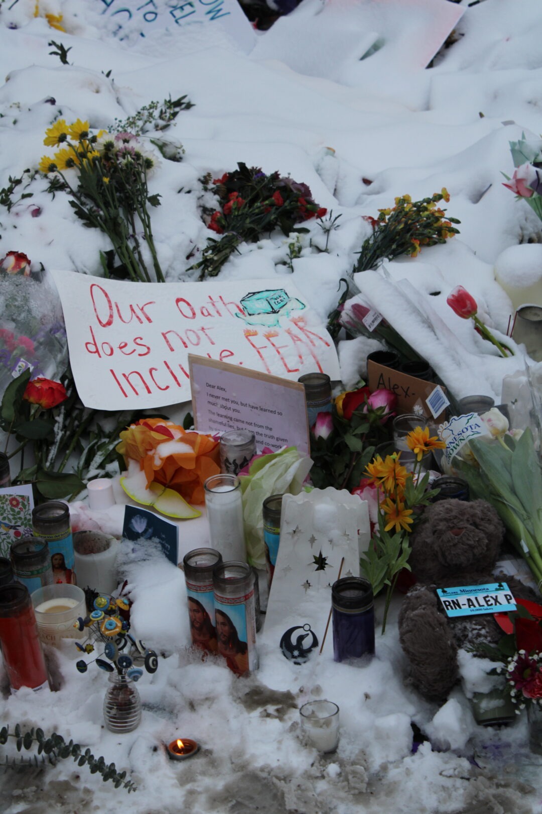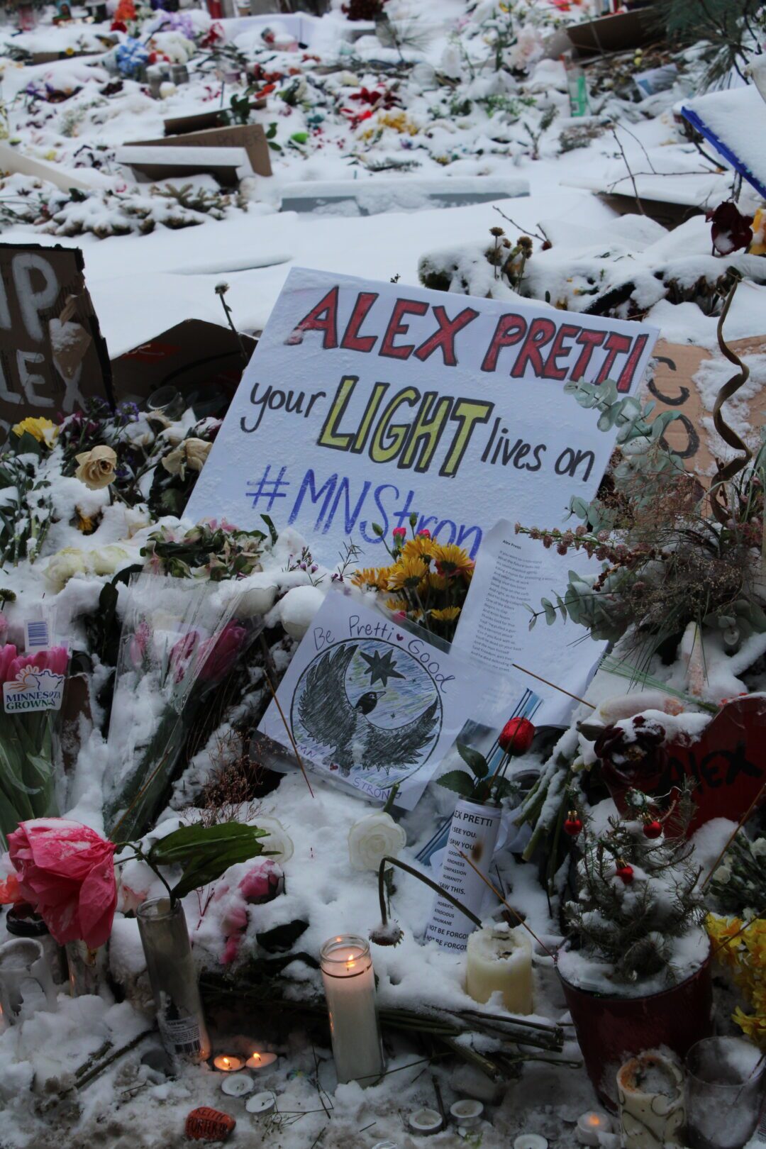 On the 24th of January, Alex Pretti, a 37-year-old intensive-care nurse in Minneapolis, was protesting the presence of Operation Metro Surge, which brought an estimated 3,000 federal agents from the Department of Homeland Security to the Twin Cities. While Pretti was protesting their presence and recording with his phone on Nicollet Avenue near 26th Street in South Minneapolis, federal agents wrestled him to the ground, then proceeded to shoot and kill him, as bystanders recorded the events. A memorial quickly grew at the site, with many locals contributing candles, flowers, and signs.